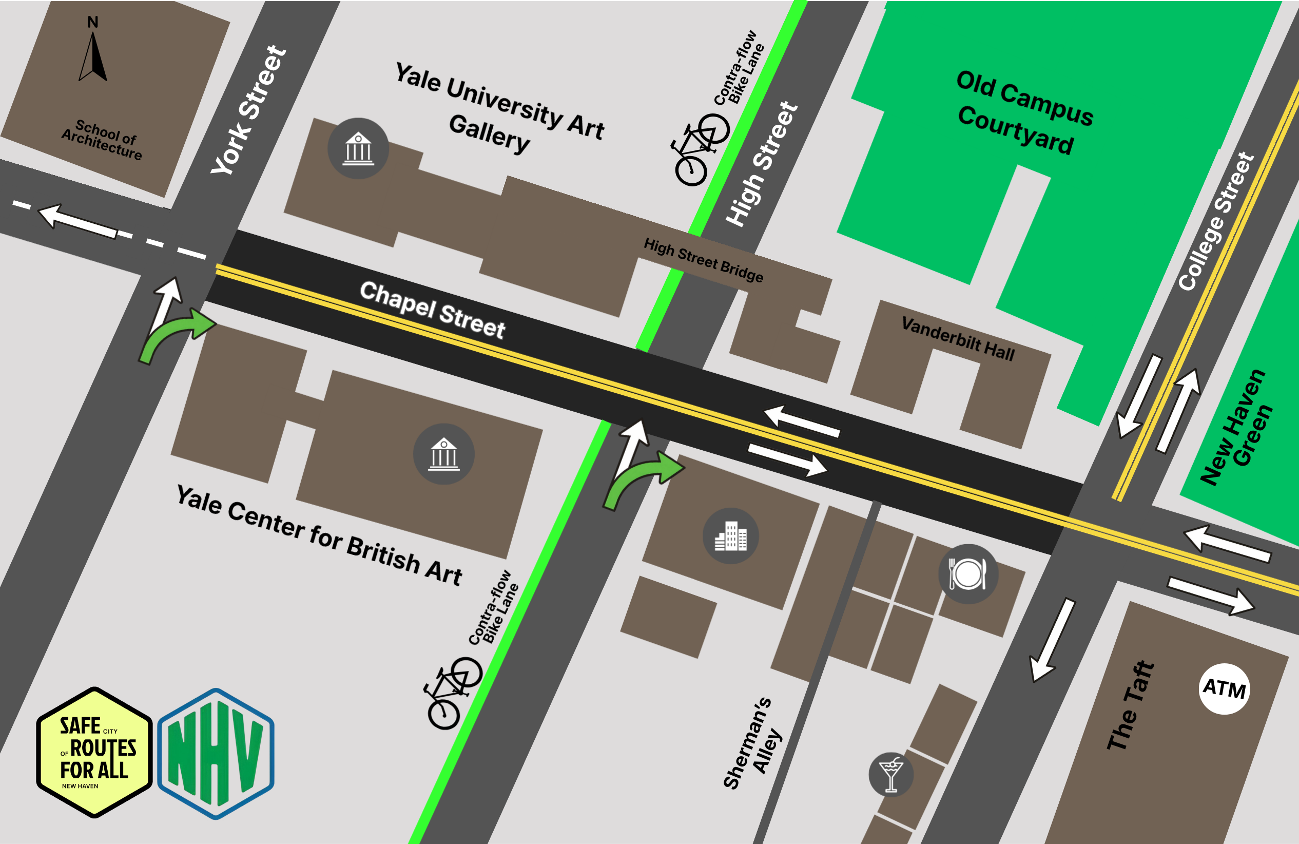The conversion, happening in its first phase between College and York Streets, is part of New Havens broader Safe Routes for All initiative to calm traffic, improve citywide mobility, and create safer streets for all road users.